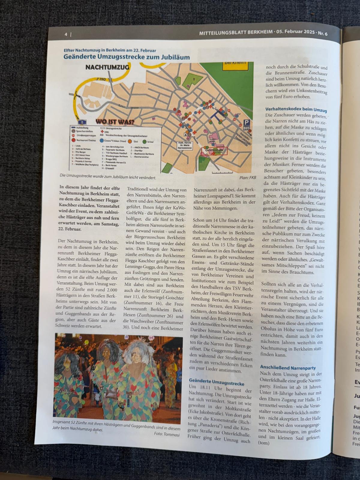 Mitteilungsblatt Berkheim über den Nachtumzug